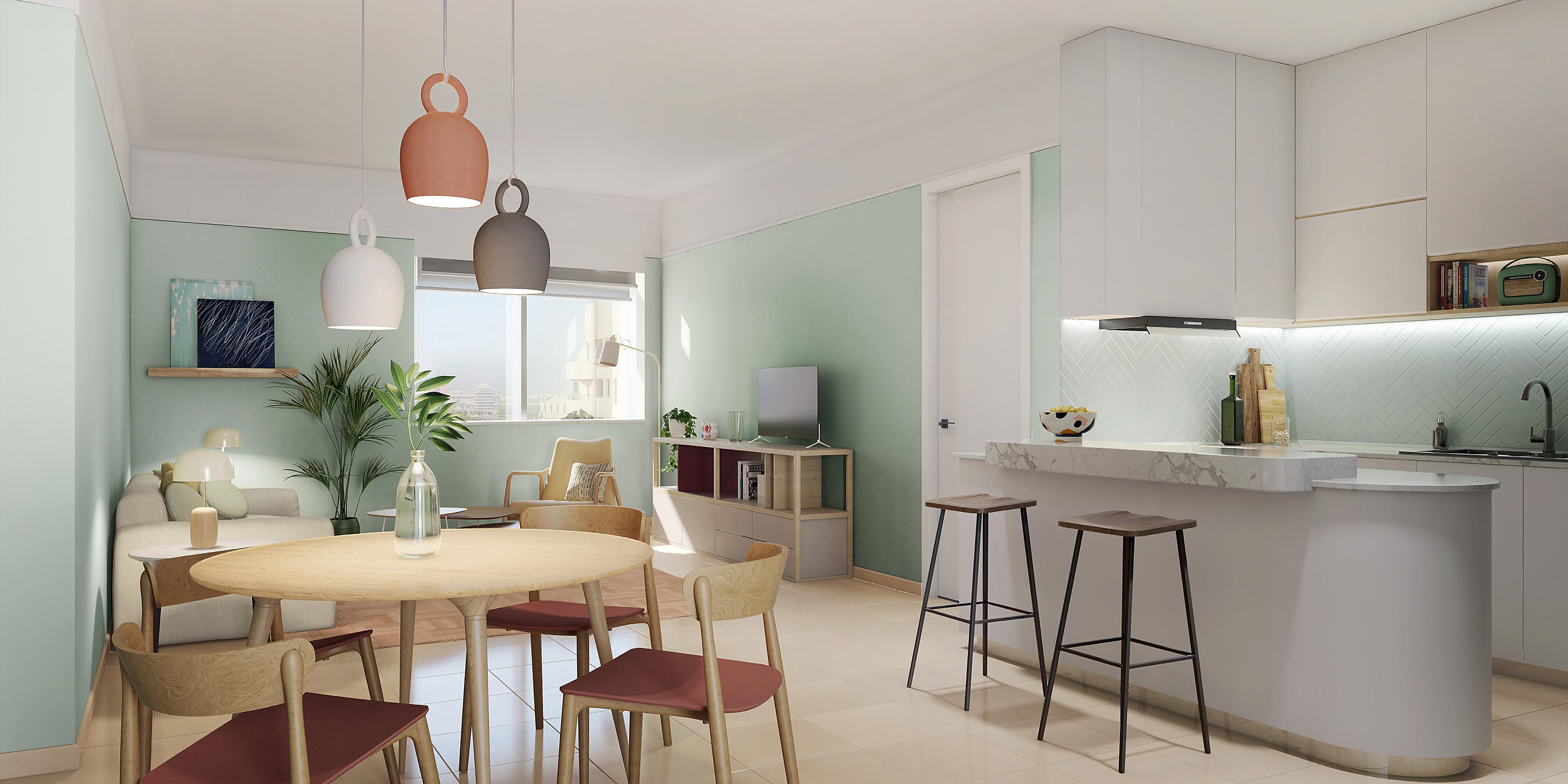 Spacious Living Room And Dining Area Of Executive One Bedroom